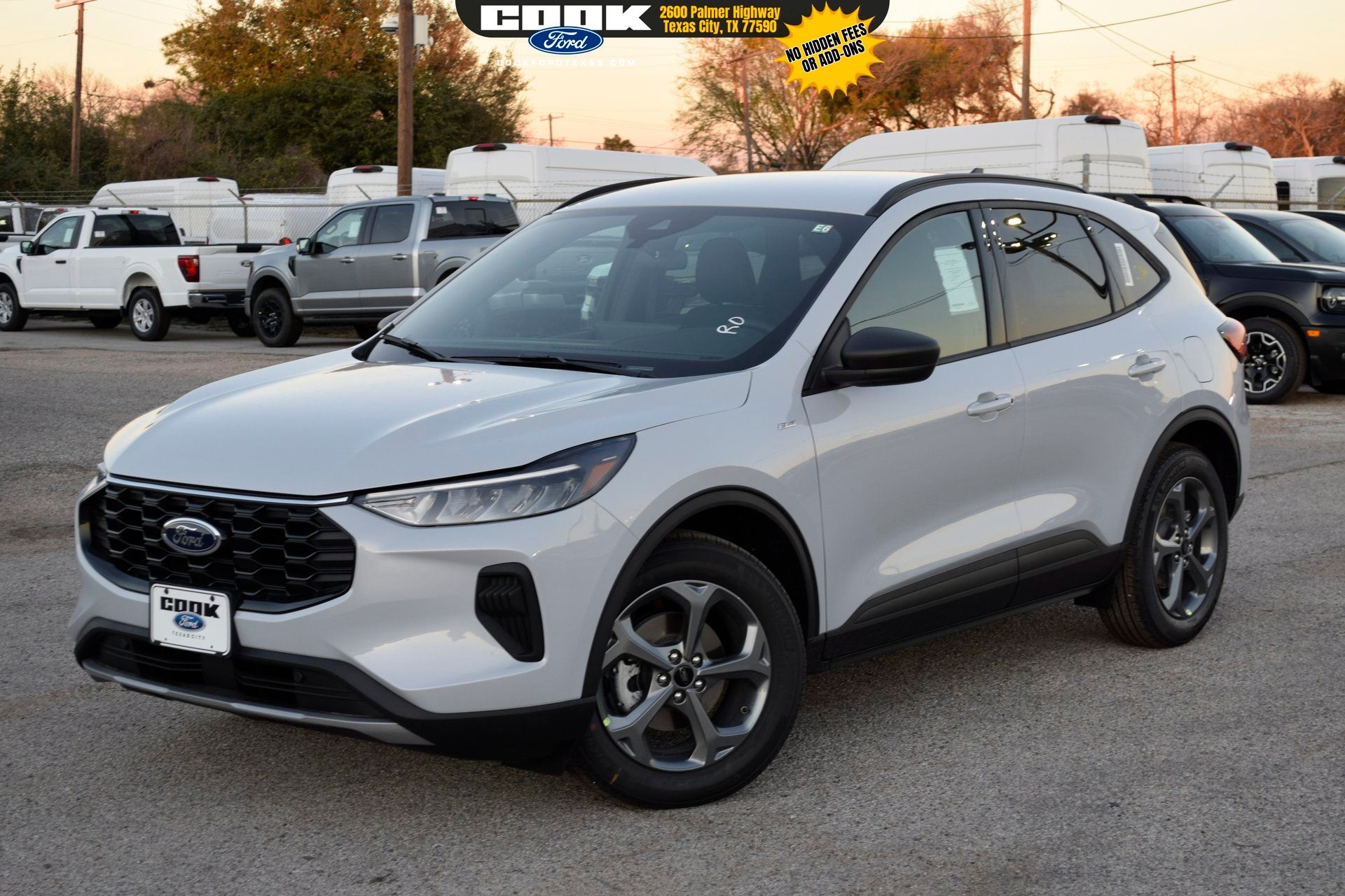 This 2026 Ford Escape ST-Line in Space Silver Metallic comes with the following features: 1.5L EcoBoost® 8-Speed Automatic FWD Equipment Group 300A (3.81 Axle Ratio, 4-Way Manual Front Passenger Seat, 8-Way Power Driver Seat, Ford App, Partial Vinyl/Cloth Front Sport Contour Bucket Seats with Red Stitching, Radio: AM/FM Stereo with SiriusXM 360L, SYNC® 4, and Wheels: 18″ Rock Metallic Painted Aluminum), Tech Pack #1 (Adaptive Cruise Control with Stop-and-Go, Connected Navigation (1-Year Included), Digital Rear View Camera, Evasive Steering Assist, Ford Co-Pilot360 Assist+, Intersection Assist, Predictive Speed Assist, Rear Parking Sensor, and SYNC® 4 with Enhanced Voice Recognition), 4-Wheel Disc Brakes, 6 Speakers, ABS brakes, Air Conditioning, Alloy wheels, AM/FM radio: SiriusXM 360L, Auto High-beam Headlights, Automatic temperature control, Brake assist, Bumpers: body-color, Compass, Delay-off headlights, Driver door bin, Driver vanity mirror, Dual front impact airbags, Dual front side impact airbags, Electronic Stability Control, Emergency communication system: SYNC® 4 911 Assist, Four wheel independent suspension, Front anti-roll bar, Front Bucket Seats, Front Center Armrest, Front dual zone A/C, Front License Plate Bracket, Front reading lights, Fully automatic headlights, Heated steering wheel, Illuminated entry, Knee airbag, Low tire pressure warning, Occupant sensing airbag, Outside temperature display, Overhead airbag, Overhead console, Panic alarm, Passenger door bin, Passenger vanity mirror, Power door mirrors, Power driver seat, Power steering, Power windows, Radio data system, Rear anti-roll bar, Rear reading lights, Rear seat center armrest, Rear window defroster, Rear window wiper, Remote keyless entry, Speed control, Speed-sensing steering, Speed-Sensitive Wipers, Split folding rear seat, Spoiler, Sport steering wheel, Steering wheel mounted audio controls, Tachometer, Telescoping steering wheel, Tilt steering wheel, Traction control, Trip computer, and Variably intermittent wipers. Rebates subject to geographical qualification. Price includes: *Manufacturer’s Rebates shown above are subject to residency restrictions. Any customer not meeting the residency restriction will receive a dealer discount in the same amount of the manufacturer rebate.$1000 – SUV Spike Retail Bonus Cash. Exp. 02/16/2026 $2000 – Bonus Customer Cash. Exp. 03/31/2026 $500 – Retail Customer Cash. Exp. 03/31/2026