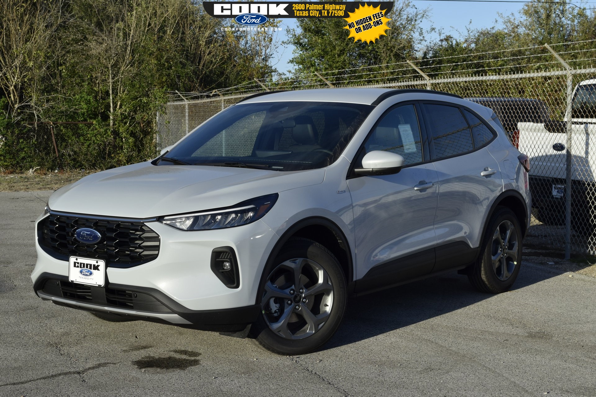 This 2026 Ford Escape Hybrid ST-Line Select in Silver Metallic comes with the following features: 2.5L iVCT eCVT AWD Equipment Group 400A (2.91 Axle Ratio, 4-Way Manual Front Passenger Seat, 8-Way Power Driver Seat, Electronic Fuel Door Release, Ford App, Neutral Towing Capability, Partial Vinyl/Cloth Heated Front Sport Contour Bucket Seats with Red Stitching, Pedestrian Alert Sounder, Radio: AM/FM Stereo with SiriusXM 360L, SYNC® 4, and Wheels: 18″ Rock Metallic Painted Aluminum), Tech Pack #1 (Adaptive Cruise Control with Stop-and-Go, Connected Navigation (1-Year Included), Digital Rear View Camera, Evasive Steering Assist, Ford Co-Pilot360 Assist+, Intersection Assist, Predictive Speed Assist, Rear Parking Sensor, and SYNC® 4 with Enhanced Voice Recognition), 10-Way Power Driver’s Seat w/Memory, 4-Wheel Disc Brakes, 6 Speakers, ABS brakes, Air Conditioning, Alloy wheels, AM/FM radio: SiriusXM 360L, Auto High-beam Headlights, Automatic temperature control, Brake assist, Bumpers: body-color, Compass, Delay-off headlights, Driver door bin, Driver vanity mirror, Dual front impact airbags, Dual front side impact airbags, Easy Access Cargo Shade, Electronic Stability Control, Emergency communication system: SYNC® 4 911 Assist, Four wheel independent suspension, Front anti-roll bar, Front Bucket Seats, Front Center Armrest, Front dual zone A/C, Front fog lights, Front License Plate Bracket, Front reading lights, Fully automatic headlights, Heated door mirrors, Heated Front Seats, Heated steering wheel, Illuminated entry, Knee airbag, Low tire pressure warning, Memory seat, Occupant sensing airbag, Outside temperature display, Overhead airbag, Overhead console, Panic alarm, Passenger door bin, Passenger vanity mirror, Power door mirrors, Power driver seat, Power Liftgate, Power steering, Power windows, Radio data system, Rear anti-roll bar, Rear reading lights, Rear seat center armrest, Rear window defroster, Rear window wiper, Remote keyless entry, Speed control, Speed-sensing steering, Speed-Sensitive Wipers, Split folding rear seat, Spoiler, Sport steering wheel, Steering wheel mounted audio controls, Tachometer, Telescoping steering wheel, Tilt steering wheel, Traction control, Trip computer, and Variably intermittent wipers. Rebates subject to geographical qualification. Price includes: *Manufacturer’s Rebates shown above are subject to residency restrictions. Any customer not meeting the residency restriction will receive a dealer discount in the same amount of the manufacturer rebate.$2000 – Bonus Customer Cash. Exp. 01/05/2026