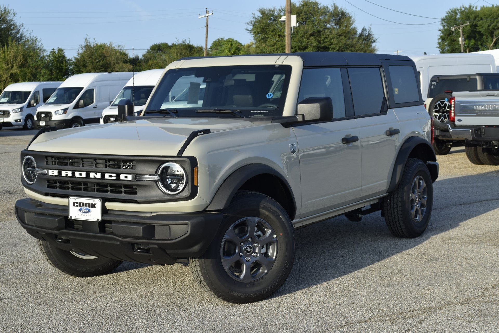 This 2025 Ford Bronco Big Bend in Desert Sand comes with the following features: 2.3L EcoBoost® I-4 10-Speed Automatic 4WD Equipment Group 222A Mid Package (Connected Navigation), 4-Wheel Disc Brakes, 4.46 Axle Ratio, 7 Speakers, ABS brakes, Air Conditioning, Alloy wheels, AM/FM radio: SiriusXM with 360L, AM/FM Stereo, Auto High-beam Headlights, Brake assist, Carbonized Gray Molded-In-Color Hard Top, Cloth Bucket Seats, Compass, Delay-off headlights, Driver door bin, Driver vanity mirror, Dual front impact airbags, Dual front side impact airbags, Electronic Stability Control, Emergency communication system: 911 Assist, Exterior Parking Camera Rear, Front anti-roll bar, Front Bucket Seats, Front Center Armrest, Front reading lights, Front wheel independent suspension, Fully automatic headlights, Hard Top Sound Deadening Headliner, Heated door mirrors, Illuminated entry, Integrated roll-over protection, Leather Shift Knob, Low tire pressure warning, Occupant sensing airbag, Outside temperature display, Overhead airbag, Overhead console, Panic alarm, Passenger door bin, Passenger vanity mirror, Power door mirrors, Power steering, Power windows, Radio data system, Rear-Window Defroster & Washer, Remote keyless entry, Security system, SiriusXM w/360L, Speed control, Split folding rear seat, Steering wheel mounted audio controls, SYNC® 4, Tachometer, Telescoping steering wheel, Tilt steering wheel, Traction control, Trip computer, Variably intermittent wipers, and Wheels: 17″ Carbonized Gray-Painted Aluminum. Rebates subject to geographical qualification. Price includes: *Manufacturer’s Rebates shown above are subject to residency restrictions. Any customer not meeting the residency restriction will receive a dealer discount in the same amount of the manufacturer rebate.$2500 – Retail Bonus Cash. Exp. 10/31/2025