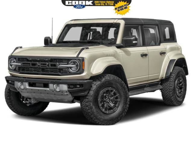 This 2026 Ford Bronco Raptor in Desert Sand comes with the following features: 3.0L EcoBoost® V6 10-Speed Automatic 4WD Equipment Group 374A Lux Package (Marine Grade Vinyl Bucket Seats and Wheels: 17″ Black High Gloss-Painted Aluminum), Ford Connectivity Package (1-Year Included), 12 Speakers, 4-Wheel Disc Brakes, ABS brakes, Air Conditioning, Alloy wheels, AM/FM radio: SiriusXM with 360L, Auto High-beam Headlights, Auto-dimming Rear-View mirror, Automatic temperature control, Brake assist, Compass, Connected Navigation, Convertible HardTop, Convertible roof lining, Delay-off headlights, Driver door bin, Driver vanity mirror, Dual front impact airbags, Dual front side impact airbags, Electronic Stability Control, Emergency communication system: 911 Assist, Exterior Parking Camera Rear, Front anti-roll bar, Front Bucket Seats, Front Center Armrest, Front dual zone A/C, Front fog lights, Front License Plate Bracket, Front reading lights, Front wheel independent suspension, Fully automatic headlights, Glass rear window, Hard Top Sound Deadening Headliner, Heated door mirrors, Heated Front Seats, Heated steering wheel, Illuminated entry, Integrated roll-over protection, Leather Shift Knob, Low tire pressure warning, Navigation system: Connected Navigation, Occupant sensing airbag, Outside temperature display, Overhead airbag, Overhead console, Panic alarm, Passenger door bin, Passenger vanity mirror, Power door mirrors, Power steering, Power windows, Radio data system, Rear anti-roll bar, Rear seat center armrest, Rear window defroster, Rear window wiper, Rear-Window Defroster and Washer, Remote keyless entry, Security system, Shadow Black Painted Hard Top, SiriusXM with 360L, SiriusXM with 360L (3-Year Plan), Speed control, Split folding rear seat, Steering wheel mounted audio controls, SYNC® 4, Tachometer, Telescoping steering wheel, Tilt steering wheel, Traction control, Trip computer, Turn signal indicator mirrors, Variably intermittent wipers, and Voltmeter.