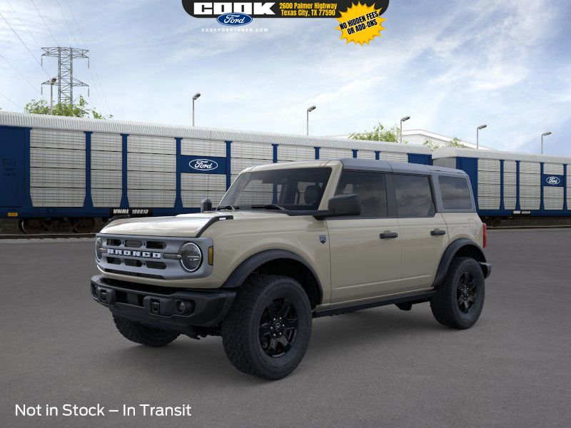 This 2025 Ford Bronco Big Bend in Desert Sand comes with the following features: 2.3L EcoBoost® I-4 10-Speed Automatic 4WD Black Diamond Package (Auxiliary Switches, LED Fog Lamps, Powder Coated Steel Front & Rear Bumpers, Rock Rails, Washout Capable Rubberized Flooring, and Wheels: 17″ Black High Gloss Painted Aluminum), Equipment Group 222A Mid Package (2-Door Intelligent Access w/Lock/Unlock, Ambient Footwell Lighting, Connected Navigation, Dr & Pass Illuminated Sliding Visor Vanity Mirrors, Dual Smart Charging USB Ports, Dual-Zone Electronic Automatic Temperature Control, Front Row Heated Seats, Power Outlet – Back Side of Center Floor Console, and Rear Parking Sensors), 4-Wheel Disc Brakes, 7 Speakers, ABS brakes, Air Conditioning, Alloy wheels, AM/FM radio: SiriusXM with 360L, AM/FM Stereo, Auto High-Beam Headlamps, Auto High-beam Headlights, BLIS Blind Spot Information System, Brake assist, Carbonized Gray Molded-In-Color Hard Top, Cloth Bucket Seats, Compass, Delay-off headlights, Driver door bin, Driver vanity mirror, Dual front impact airbags, Dual front side impact airbags, Electronic Stability Control, Emergency communication system: 911 Assist, Exterior Parking Camera Rear, Front anti-roll bar, Front Bucket Seats, Front Center Armrest, Front reading lights, Front wheel independent suspension, Fully automatic headlights, Hard Top Sound Deadening Headliner, Heated door mirrors, Illuminated entry, Integrated roll-over protection, Internet access capable: FordPass Connect, Lane-Keeping System, Leather Shift Knob, Low tire pressure warning, Occupant sensing airbag, Outside temperature display, Overhead airbag, Overhead console, Panic alarm, Passenger door bin, Passenger vanity mirror, Power door mirrors, Power steering, Power windows, Pre-Collision Assist w/Automatic Emergency Braking, Radio data system, Rear-View Camera, Rear-Window Defroster & Washer, Remote keyless entry, Security system, SiriusXM w/360L, Speed control, Split folding rear seat, Steering wheel mounted audio controls, SYNC® 4, Tachometer, Telescoping steering wheel, Tilt steering wheel, Traction control, Trip computer, Variably intermittent wipers, and Wheels: 17″ Carbonized Gray-Painted Aluminum. Rebates subject to geographical qualification. Price includes: *Manufacturer’s Rebates shown above are subject to residency restrictions. Any customer not meeting the residency restriction will receive a dealer discount in the same amount of the manufacturer rebate.$2500 – Retail Customer Cash. Exp. 03/31/2026