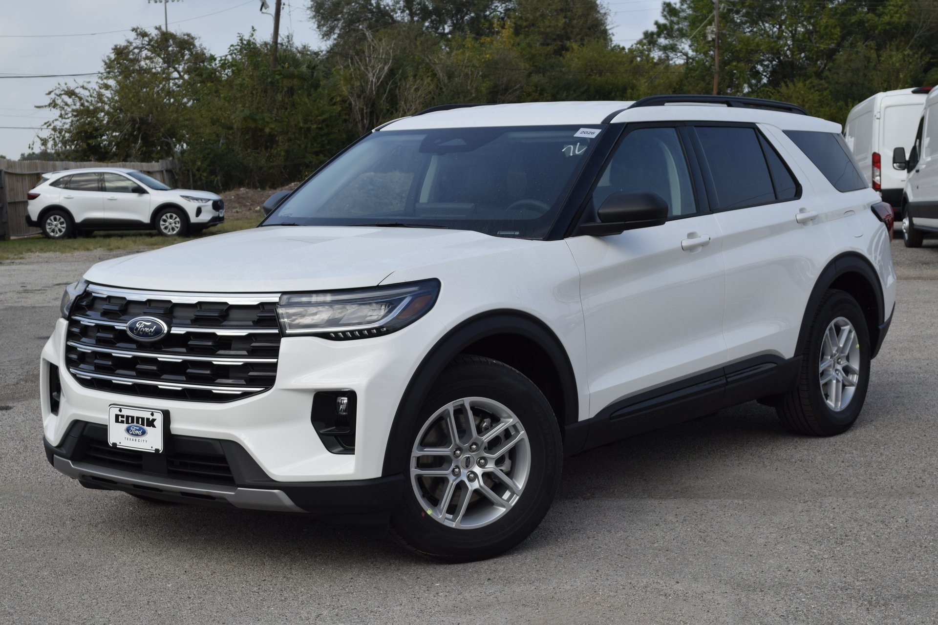 This 2026 Ford Explorer Active in Star White Metallic Tri-Coat comes with the following features: 2.3L EcoBoost® I-4 10-Speed Automatic RWD Active Comfort Package (Front Fascia, Heated ActiveX Seating Material Captain’s Chairs, Heated Steering Wheel, and Remote Start System), 3rd Row seats: bench, 4-Wheel Disc Brakes, 6 Speakers, ABS brakes, Air Conditioning, Alloy wheels, AM/FM radio: SiriusXM with 360L, AM/FM Stereo, Apple CarPlay/Android Auto, Auto High-beam Headlights, Automatic temperature control, Brake assist, Bumpers: body-color, Compass, Delay-off headlights, Driver door bin, Driver vanity mirror, Dual front impact airbags, Dual front side impact airbags, Electronic Stability Control, Emergency communication system: 911 Assist, Exterior Parking Camera Rear, Four wheel independent suspension, Front anti-roll bar, Front Bucket Seats, Front Center Armrest, Front dual zone A/C, Front reading lights, Fully automatic headlights, Heated door mirrors, Illuminated entry, Knee airbag, Low tire pressure warning, Navigation System, Occupant sensing airbag, Outside temperature display, Overhead airbag, Overhead console, Panic alarm, Passenger door bin, Passenger vanity mirror, Power driver seat, Power steering, Power windows, Rear air conditioning, Rear anti-roll bar, Rear reading lights, Rear window defroster, Rear window wiper, Remote keyless entry, Security system, Speed control, Speed-sensing steering, Speed-Sensitive Wipers, Split folding rear seat, Spoiler, Steering wheel mounted audio controls, Tachometer, Telescoping steering wheel, Tilt steering wheel, Traction control, Trip computer, Unique Cloth Captain’s Chairs, Variably intermittent wipers, and Wheels: 18″ Sparkle Silver-Painted Aluminum. Rebates subject to geographical qualification. Price includes: *Manufacturer’s Rebates shown above are subject to residency restrictions. Any customer not meeting the residency restriction will receive a dealer discount in the same amount of the manufacturer rebate.$500 – Bonus Customer Cash. Exp. 01/05/2026