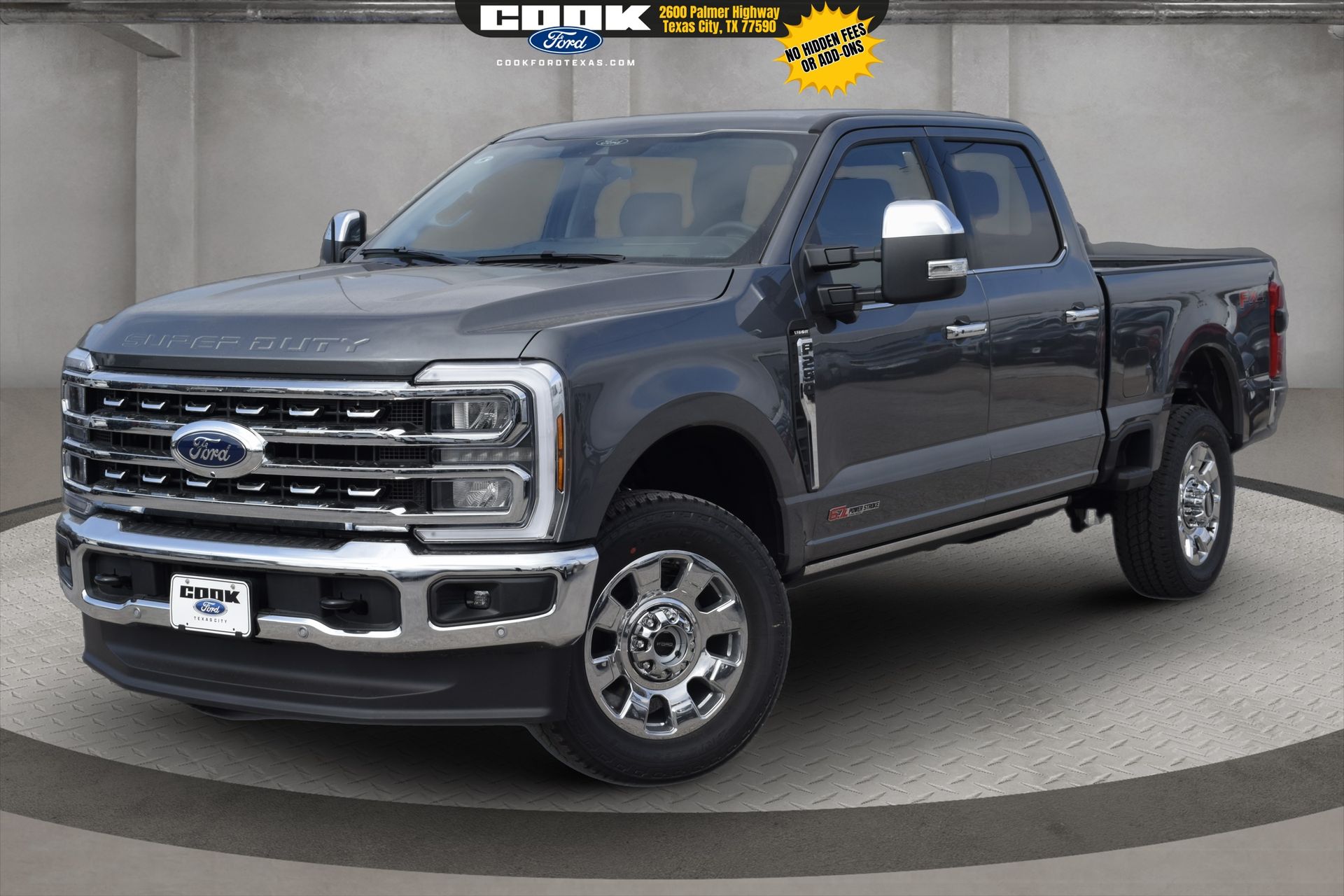 This 2026 Ford F-250SD LARIAT in Gray comes with the following features: 6.7L High Output Power Stroke V8 Diesel 10-Speed Automatic 4WD Ford Connectivity Package (1-Year Included), GVWR: F-250 >10K Package, Internet access capable: 5G Modem – Ford Connectivity Package, 3.73 Axle Ratio, 4-Wheel Disc Brakes, 8 Speakers, ABS brakes, Adjustable pedals, Air Conditioning, Alloy wheels, AM/FM radio: SiriusXM with 360L, Auto High-beam Headlights, Auto-dimming Rear-View mirror, Automatic temperature control, BLIS with Cross-Traffic Alert, Brake assist, Bumpers: chrome, Compass, Delay-off headlights, Driver door bin, Driver vanity mirror, Dual front impact airbags, Dual front side impact airbags, Electronic Stability Control, Emergency communication system: SYNC® 4 911 Assist, Flow-Through Console, Front ActiveX Trimmed 40/Console/40 Seats, Front anti-roll bar, Front Bucket Seats, Front Center Armrest, Front dual zone A/C, Front fog lights, Front reading lights, Fully automatic headlights, Garage door transmitter, Heated door mirrors, Heated Front Seats, Heated rear seats, Heated steering wheel, Illuminated entry, Low tire pressure warning, Memory seat, Navigation system: Connected Navigation, Outside temperature display, Overhead airbag, Overhead console, Panic alarm, Passenger door bin, Passenger vanity mirror, Pedal memory, Power door mirrors, Power driver seat, Power passenger seat, Power steering, Power windows, Privacy Glass, Radio: B&O Sound System by Bang and Olufsen, Rain sensing wipers, Rear Parking Sensors, Rear reading lights, Rear seat center armrest, Rear step bumper, Rear window defroster, Remote keyless entry, Security system, SiriusXM with 360L, Speed control, Split folding rear seat, Steering wheel mounted audio controls, SYNC® 4 with Enhanced Voice Recognition, Tachometer, Telescoping steering wheel, Tilt steering wheel, Traction control, Trip computer, Turn signal indicator mirrors, Variably intermittent wipers, Ventilated front seats, and Wheels: 18″ Bright Machined and Carbonized Gray Aluminum.