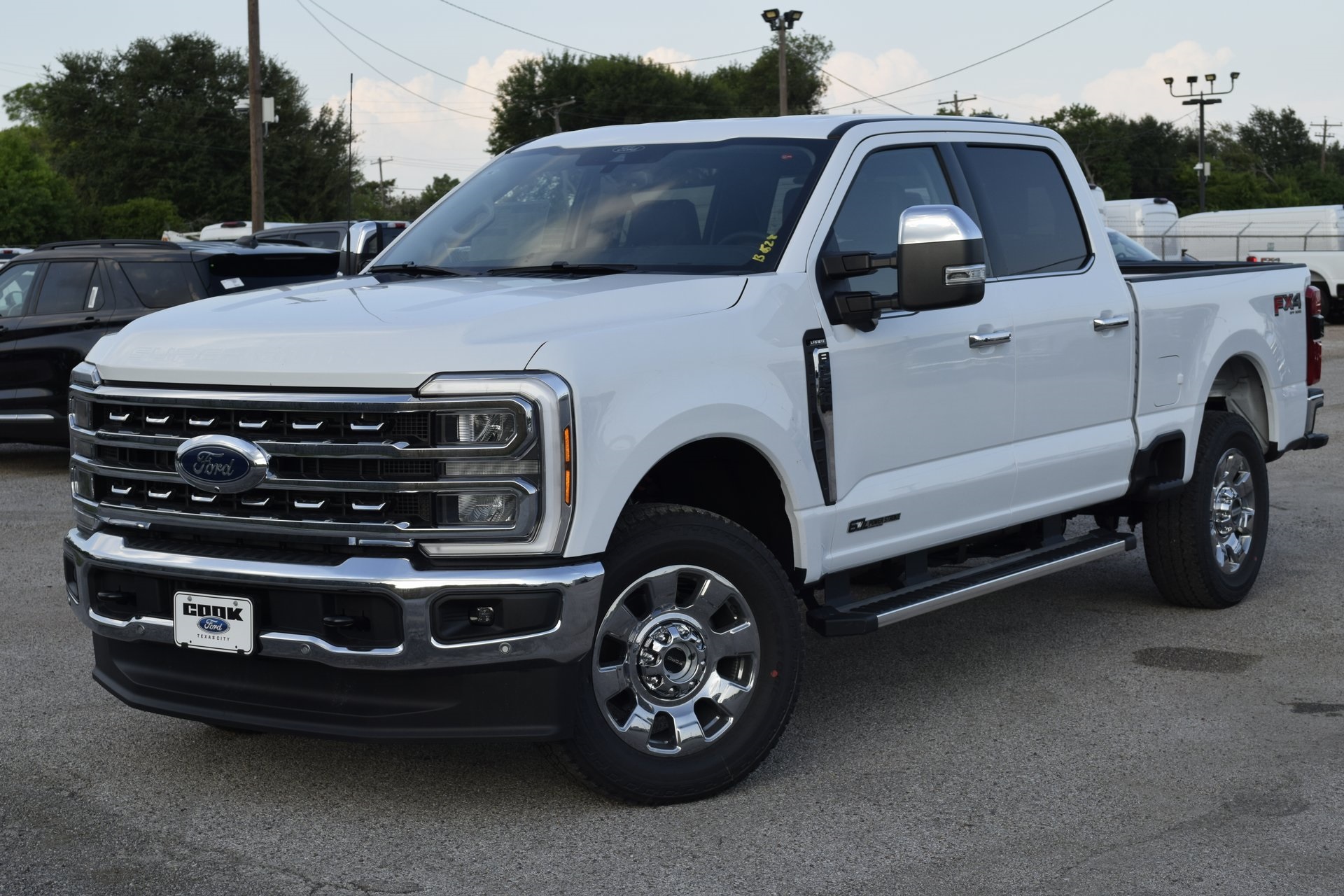 This 2026 Ford F-250SD LARIAT in Oxford White comes with the following features: Power Stroke 6.7L V8 DI 32V OHV Turbodiesel 10-Speed Automatic 4WD F-250 >10K GVWR Package, Ford Connectivity Package (1-Year Included), Internet access capable: 5G Modem – Ford Connectivity Package, ABS brakes, Alloy wheels, Compass, Electronic Stability Control, Front dual zone A/C, Heated door mirrors, Heated Front Seats, Heated rear seats, Illuminated entry, Low tire pressure warning, Remote keyless entry, Traction control, 3.73 Axle Ratio, 4-Wheel Disc Brakes, 8 Speakers, Adjustable pedals, Air Conditioning, AM/FM radio: SiriusXM with 360L, Auto High-beam Headlights, Auto-dimming Rear-View mirror, Automatic temperature control, BLIS w/Cross-Traffic Alert, Brake assist, Bumpers: chrome, Delay-off headlights, Driver door bin, Driver vanity mirror, Dual front impact airbags, Dual front side impact airbags, Emergency communication system: SYNC® 4 911 Assist, Flow-Through Console, Front ActiveX Trimmed 40/Console/40 Seats, Front anti-roll bar, Front Bucket Seats, Front Center Armrest, Front fog lights, Front reading lights, Fully automatic headlights, Garage door transmitter, Heated steering wheel, Memory seat, Navigation system: Connected Navigation, Outside temperature display, Overhead airbag, Overhead console, Panic alarm, Passenger door bin, Passenger vanity mirror, Pedal memory, Power door mirrors, Power driver seat, Power passenger seat, Power steering, Power windows, Privacy Glass, Radio: B&O Sound System by Bang & Olufsen, Rain sensing wipers, Rear Parking Sensors, Rear reading lights, Rear seat center armrest, Rear step bumper, Rear window defroster, Security system, SiriusXM w/360L, Speed control, Split folding rear seat, Steering wheel mounted audio controls, SYNC® 4 w/Enhanced Voice Recognition, Tachometer, Telescoping steering wheel, Tilt steering wheel, Trip computer, Turn signal indicator mirrors, Variably intermittent wipers, Ventilated front seats, and Wheels: 18″ Bright Machined & Carbonized Gray Alum.
