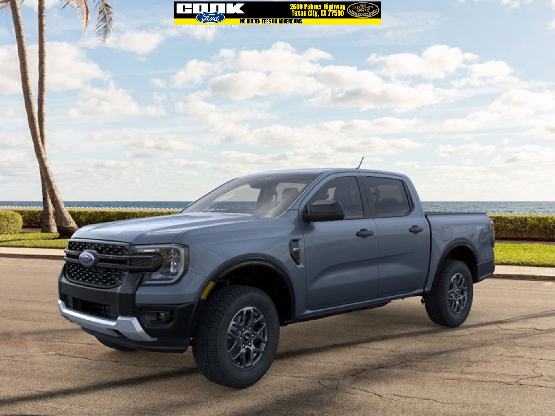 This 2025 Ford Ranger XLT in Azure Gray Metallic Tri-Coat comes with the following features: EcoBoost® 2.3L I4 GTDi DOHC Turbocharged VCT 10-Speed Automatic 4WD Sport Appearance Package (Gray Painted Center Bar & Grille Surround, Gray Painted Front Fascia & Rear Bumper, and Sport Box Decal), Trailer Tow Package (Class IV Trailer Hitch Receiver), 4-Wheel Disc Brakes, 6 Speakers, ABS brakes, Air Conditioning, Alloy wheels, AM/FM radio: SiriusXM, AM/FM Stereo, Auto High-beam Headlights, Auto-dimming Rear-View mirror, Brake assist, Cloth Front Bucket Seats, Compass, Delay-off headlights, Driver door bin, Driver vanity mirror, Dual front impact airbags, Dual front side impact airbags, Electronic Stability Control, Emergency communication system: SYNC® 4 911 Assist, Front anti-roll bar, Front Bucket Seats, Front Center Armrest, Front fog lights, Front reading lights, Front wheel independent suspension, Fully automatic headlights, Illuminated entry, Leather Shift Knob, Low tire pressure warning, Navigation system: Connected Navigation, Occupant sensing airbag, Outside temperature display, Overhead airbag, Overhead console, Panic alarm, Passenger door bin, Passenger vanity mirror, Power door mirrors, Power steering, Power windows, Rear reading lights, Rear seat center armrest, Rear step bumper, Rear window defroster, Remote keyless entry, Security system, SiriusXM Satellite Radio, Speed control, Speed-sensing steering, Steering wheel mounted audio controls, SYNC® 4A w/Connected Navigation, Telescoping steering wheel, Tilt steering wheel, Traction control, Trip computer, Variably intermittent wipers, Voltmeter, and Wheels: 17″ Gray-Painted Aluminum. Rebates subject to geographical qualification. Price includes: *Manufacturer’s Rebates shown above are subject to residency restrictions. Any customer not meeting the residency restriction will receive a dealer discount in the same amount of the manufacturer rebate.$2000 – Bonus Customer Cash. Exp. 01/05/2026 $500 – Black Friday Mega Bonus Cash. Exp. 12/01/2025