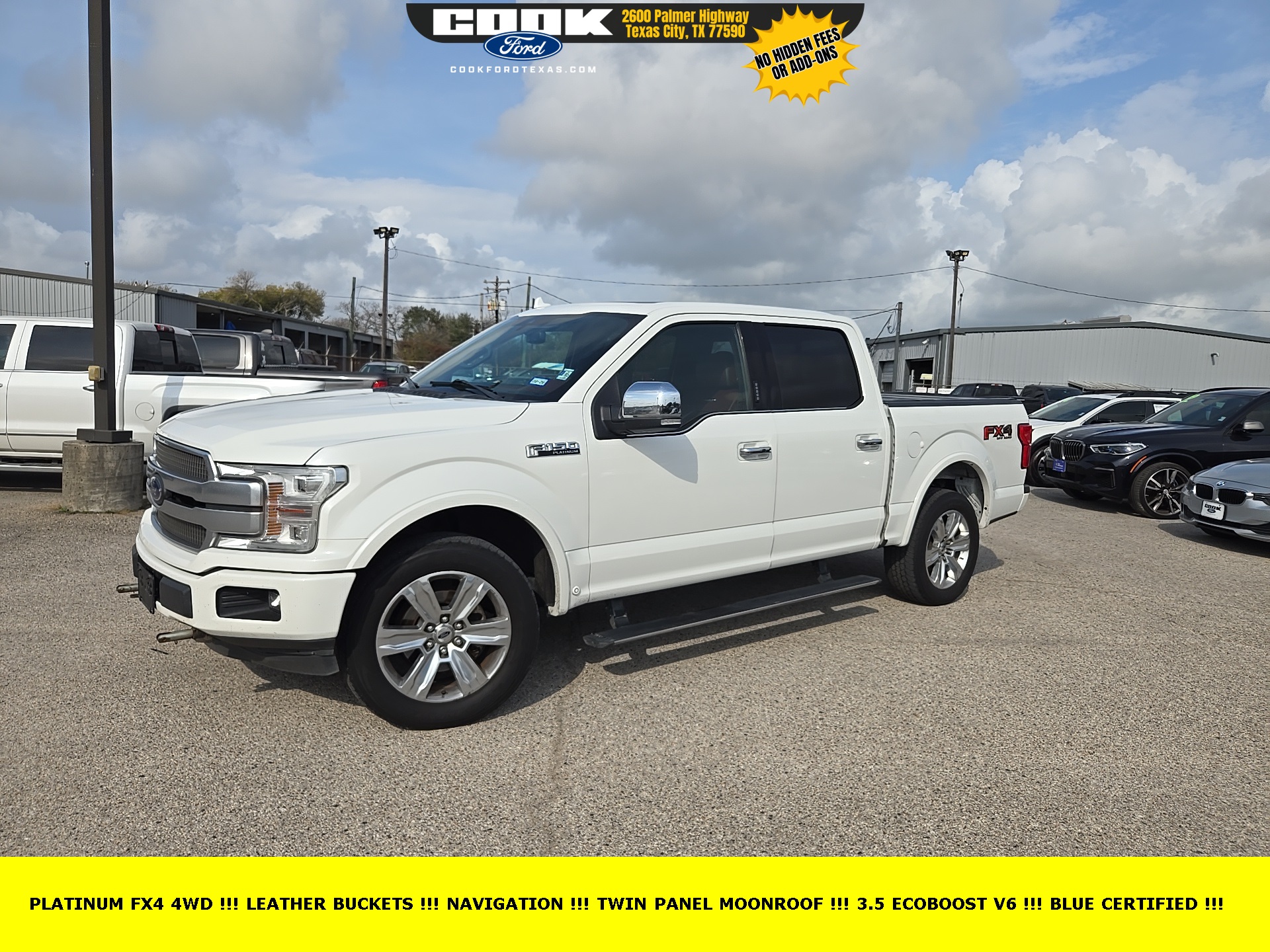 Certified. Star White Metallic Tri-Coat 2020 Ford F-150 Platinum 4WD 10-Speed Automatic 3.5L V6 EcoBoost® 20″ Polished Aluminum Wheels, 4×4 FX4 Off-Road Bodyside Decal, Class IV Trailer Hitch Receiver, Electronic Locking w/3.55 Axle Ratio, Engine Oil Cooler, Equipment Group 701A Luxury, Extended Range 36 Gallon Fuel Tank, FX4 Off-Road Package, GVWR: 7,050 lbs Payload Package, Hill Descent Control, Integrated Trailer Brake Controller, Max Trailer Tow Package, Navigation System, Off-Road Tuned Front Shock Absorbers, Pro Trailer Backup Assist, Tailgate Step w/Tailgate Lift Assist, Technology Package, Tray Style Floor Liner, Twin Panel Moonroof, Upgraded Front Stabilizer Bar.