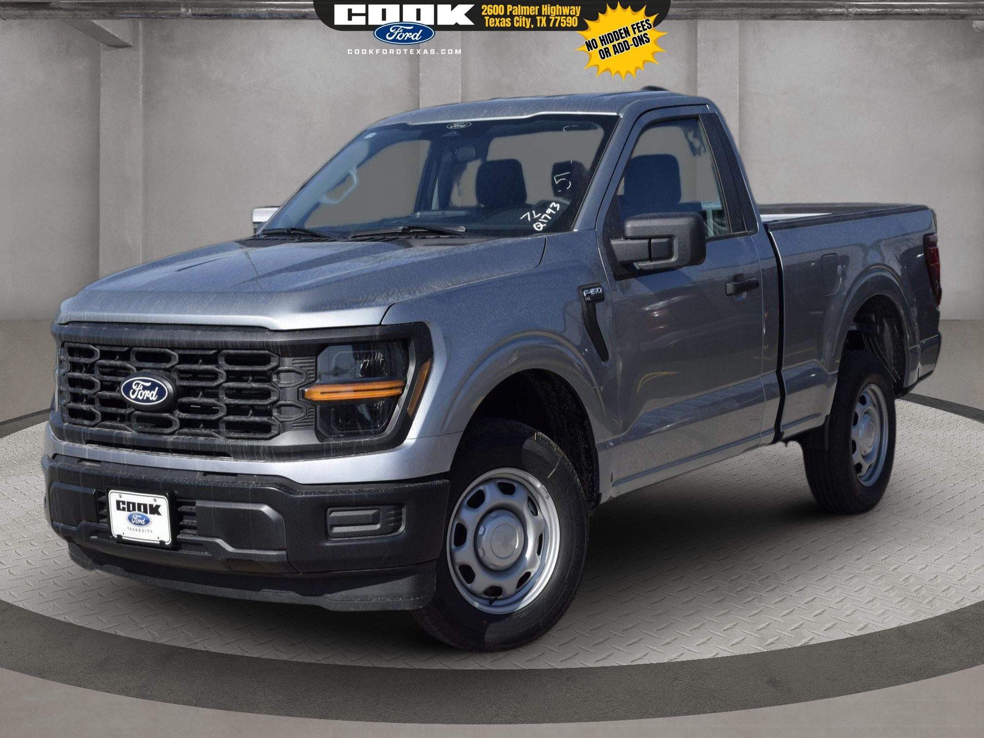This 2026 Ford F-150 XL in Iconic Silver Metallic comes with the following features: 5.0L V8 10-Speed Automatic RWD Ford Connectivity Package (1-Year Included), Internet access capable: 5G Modem – Ford Connectivity Package, 4 Speakers, 4-Wheel Disc Brakes, ABS brakes, Air Conditioning, AM/FM radio: SiriusXM with 360L, Auto High-beam Headlights, Brake assist, Cloth 40/20/40 Front Seat, Compass, Delay-off headlights, Driver door bin, Dual front impact airbags, Dual front side impact airbags, Electronic Stability Control, Emergency communication system: SYNC® 4 911 Assist, Front anti-roll bar, Front Center Armrest, Front reading lights, Front wheel independent suspension, Fully automatic headlights, Heated door mirrors, Illuminated entry, Low tire pressure warning, Occupant sensing airbag, Outside temperature display, Overhead airbag, Overhead console, Panic alarm, Passenger door bin, Passenger vanity mirror, Power door mirrors, Power steering, Power windows, Radio data system, Rear Parking Sensors, Rear step bumper, Remote keyless entry, Security system, Speed control, Steering wheel mounted audio controls, Tachometer, Telescoping steering wheel, Tilt steering wheel, Traction control, Trip computer, Variably intermittent wipers, and Wheels: 17″ Silver Steel.
