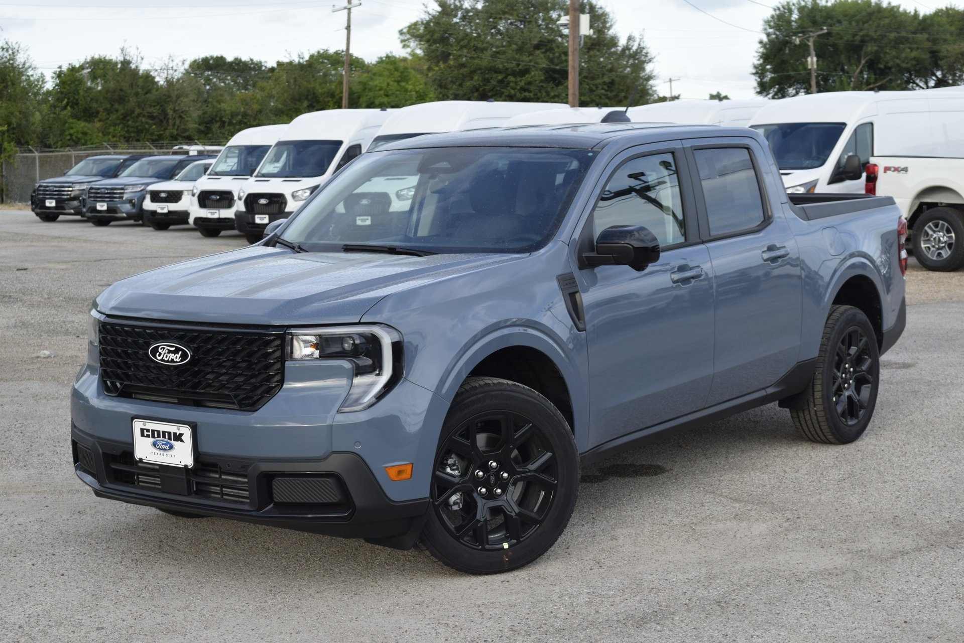 This 2025 Ford Maverick LARIAT in Azure Gray Metallic Tri-Coat comes with the following features: EcoBoost® 2.0L I4 GTDi DOHC Turbocharged VCT 8-Speed Automatic AWD 4K Tow Package (Trailer Brake Controller, Trailer Hitch (Class III) 2″ Receiver, Transmission Oil Cooler, and Upgraded Cooling Fan), Black Appearance Package (Black Grille, Black Interior Accents, Front & Back Black Edition Ford Logo, and Wheels: 19″ Black Painted Aluminum), Equipment Group 502A, 2.91 Axle Ratio, 4-Wheel Disc Brakes, 8 Speakers, ABS brakes, ActiveX Trimmed Heated Front Bucket Seats, Air Conditioning, Alloy wheels, AM/FM radio: SiriusXM with 360L, Apple CarPlay/Android Auto, Auto High-beam Headlights, Automatic temperature control, Brake assist, Bumpers: body-color, Compass, Delay-off headlights, Driver door bin, Driver vanity mirror, Dual front impact airbags, Dual front side impact airbags, Electronic Stability Control, Emergency communication system: SYNC® 4 911 Assist, Exterior Parking Camera Rear, Four wheel independent suspension, Front anti-roll bar, Front Bucket Seats, Front Center Armrest, Front dual zone A/C, Front reading lights, Fully automatic headlights, Heated door mirrors, Heated Front Seats, Heated steering wheel, Illuminated entry, Knee airbag, Low tire pressure warning, Navigation system: Connected Navigation, Occupant sensing airbag, Outside temperature display, Overhead airbag, Overhead console, Panic alarm, Passenger door bin, Passenger vanity mirror, Power door mirrors, Power driver seat, Power steering, Power windows, Radio data system, Radio: B&O Sound System by Bang & Olufsen, Rear anti-roll bar, Rear seat center armrest, Rear step bumper, Remote keyless entry, Security system, SiriusXM w/360L, Speed control, Speed-sensing steering, Steering wheel mounted audio controls, SYNC® 4 w/Enhanced Voice Recognition, Telescoping steering wheel, Tilt steering wheel, Traction control, Trip computer, and Wheels: 19″ Machined Painted Aluminum. Rebates subject to geographical qualification. Price includes: *Manufacturer’s Rebates shown above are subject to residency restrictions. Any customer not meeting the residency restriction will receive a dealer discount in the same amount of the manufacturer rebate.$1000 – Retail Customer Cash. Exp. 01/05/2026